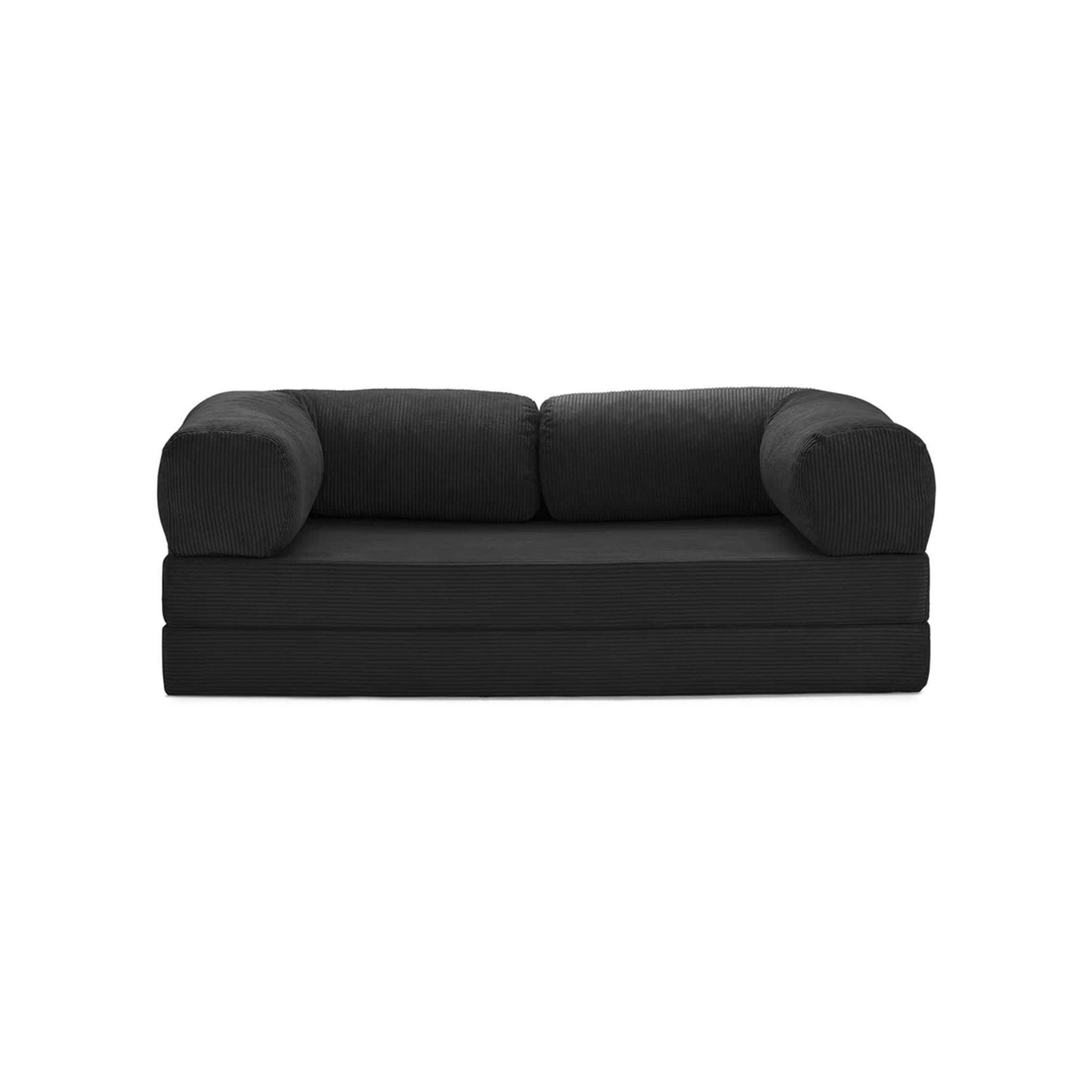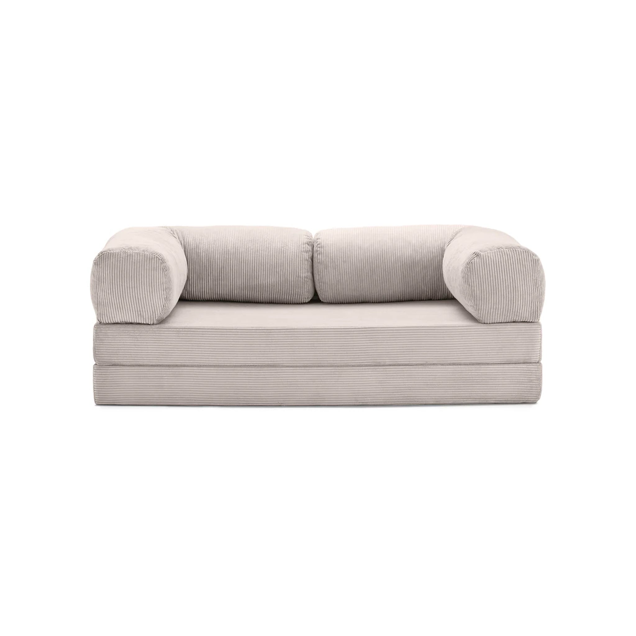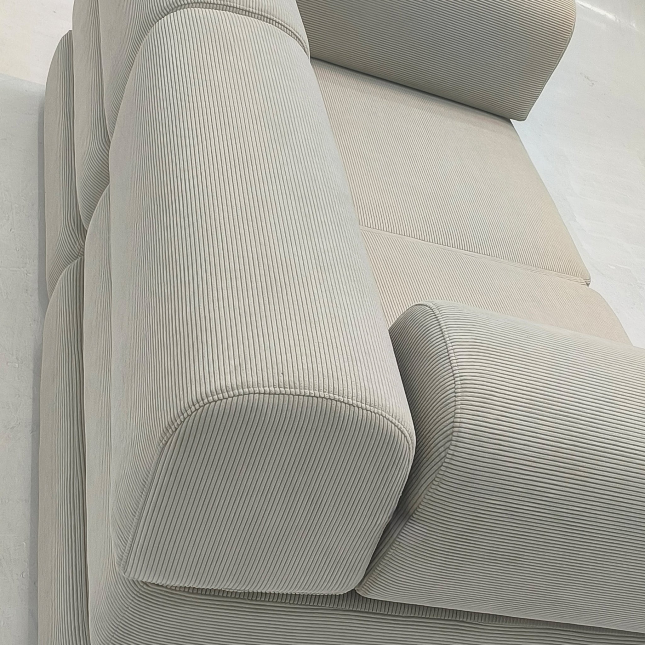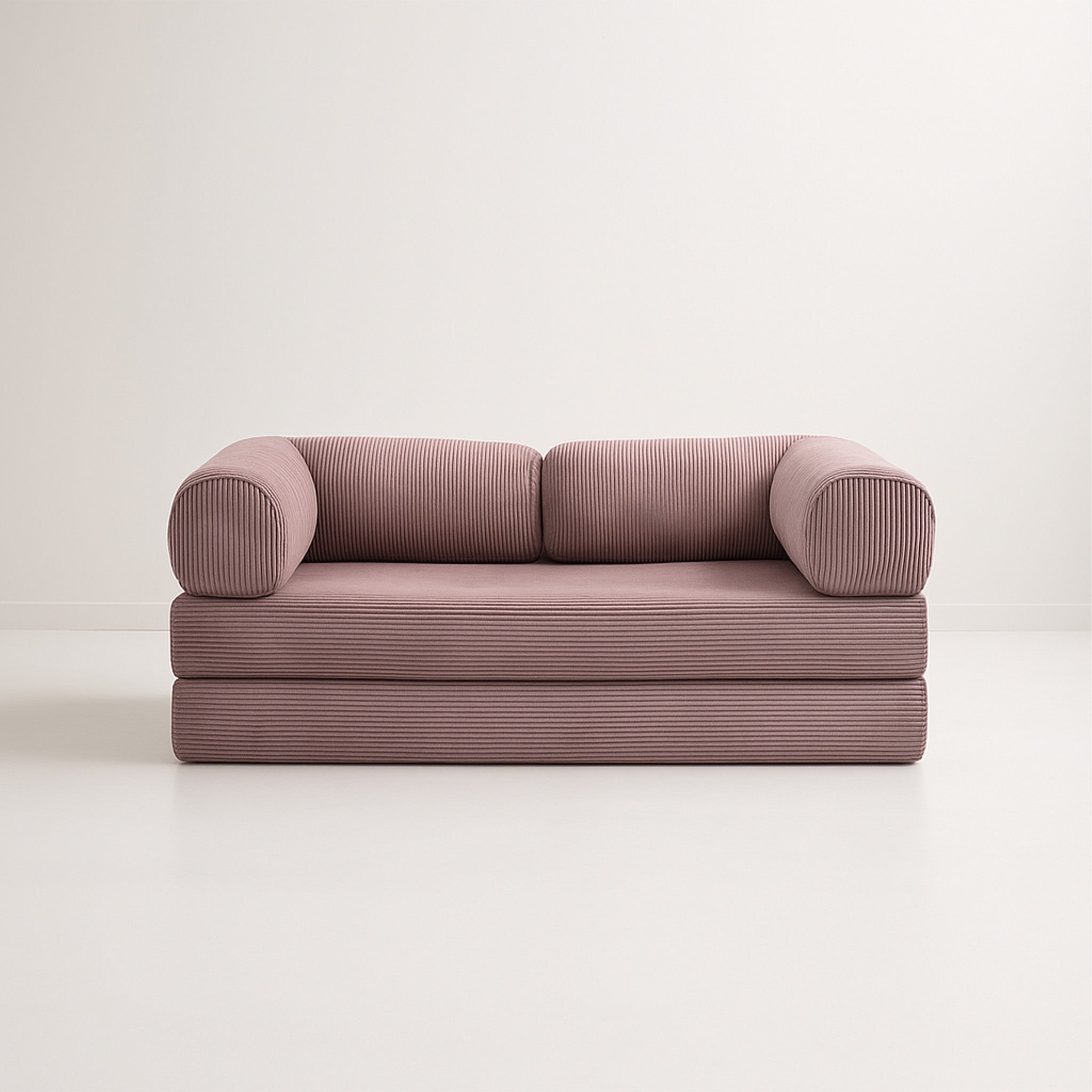 Revêtement en velours côtelé doux au toucher, rembourrage en mousse haute densité, coussins cylindriques inclus : chaque détail est pensé pour offrir un confort optimal et une esthétique contemporaine.