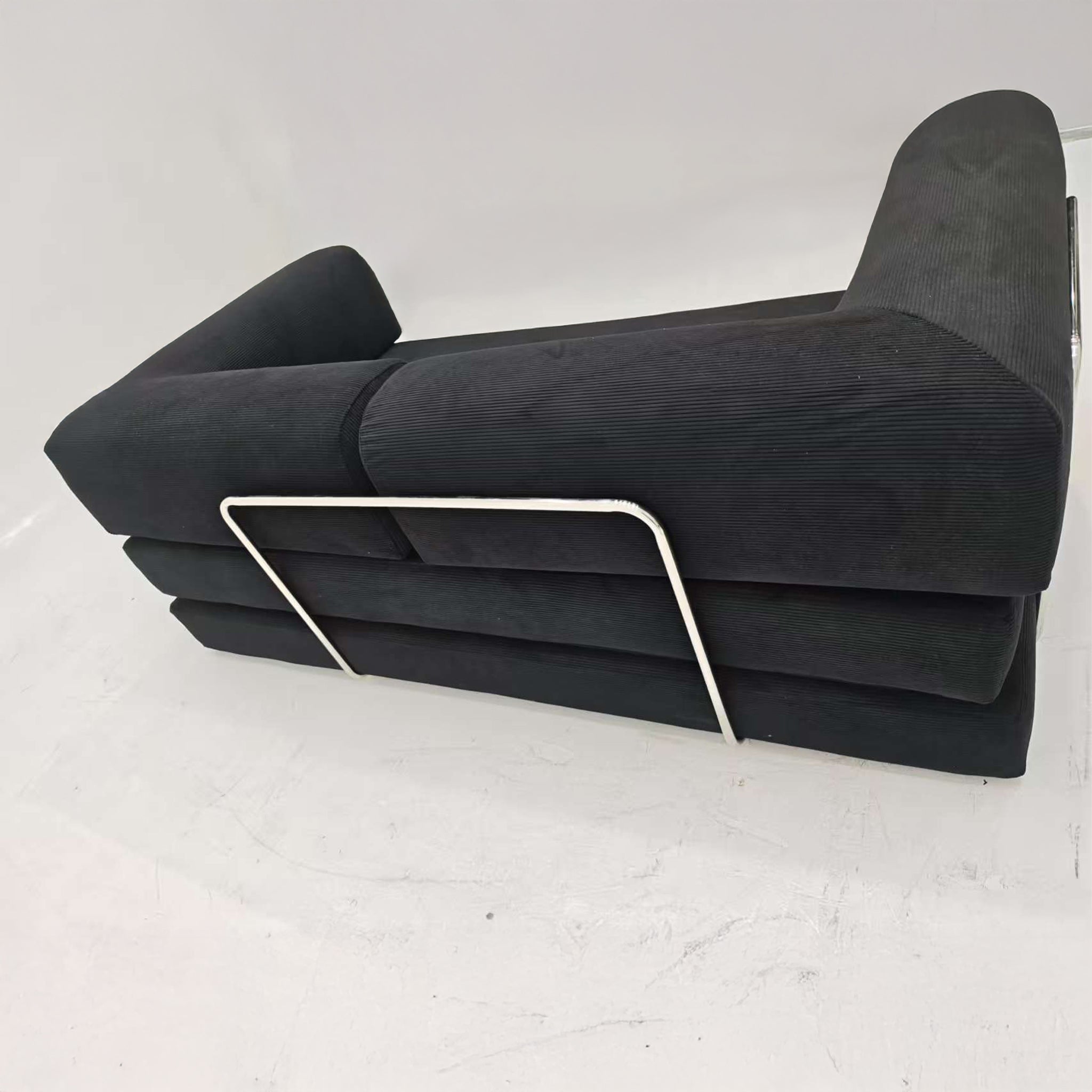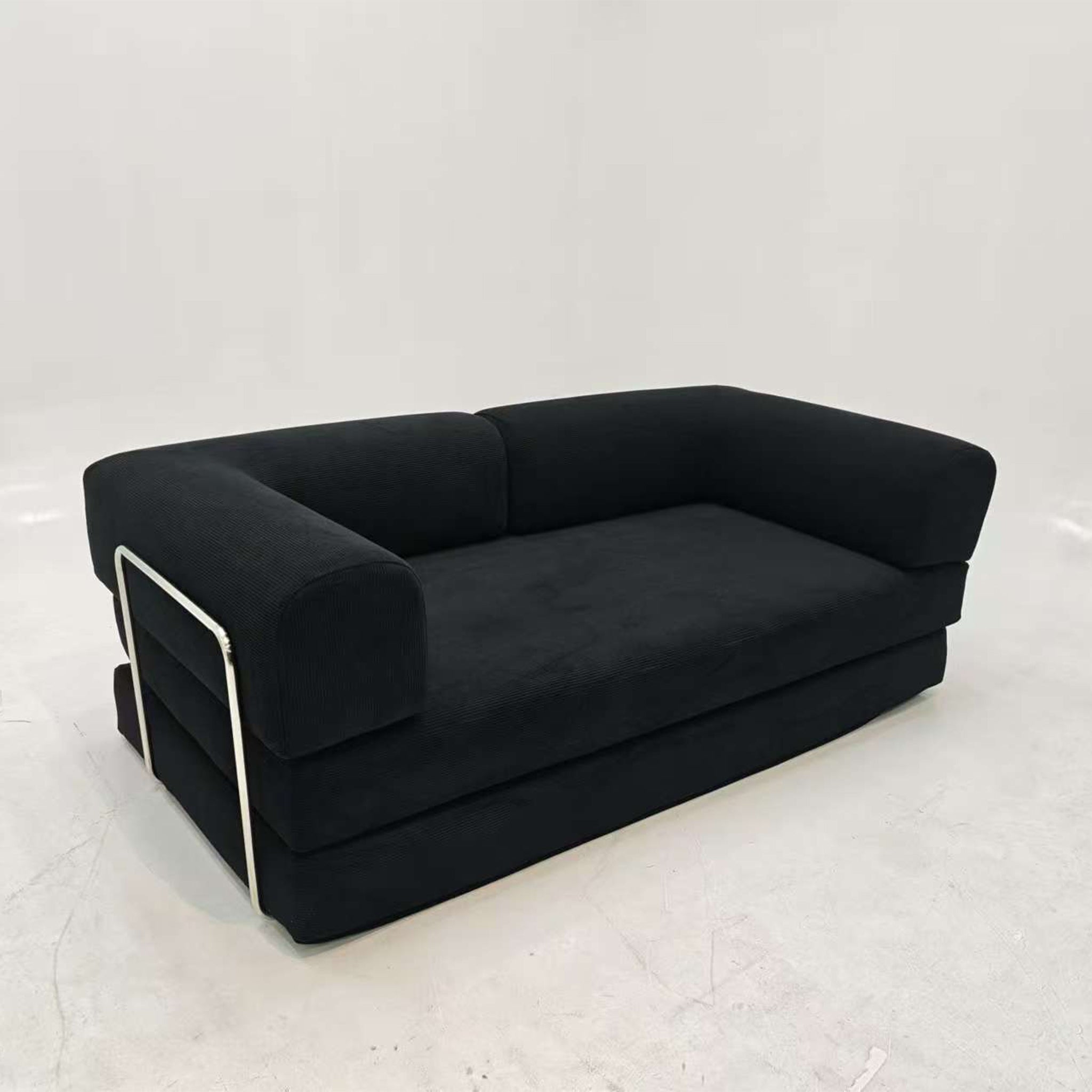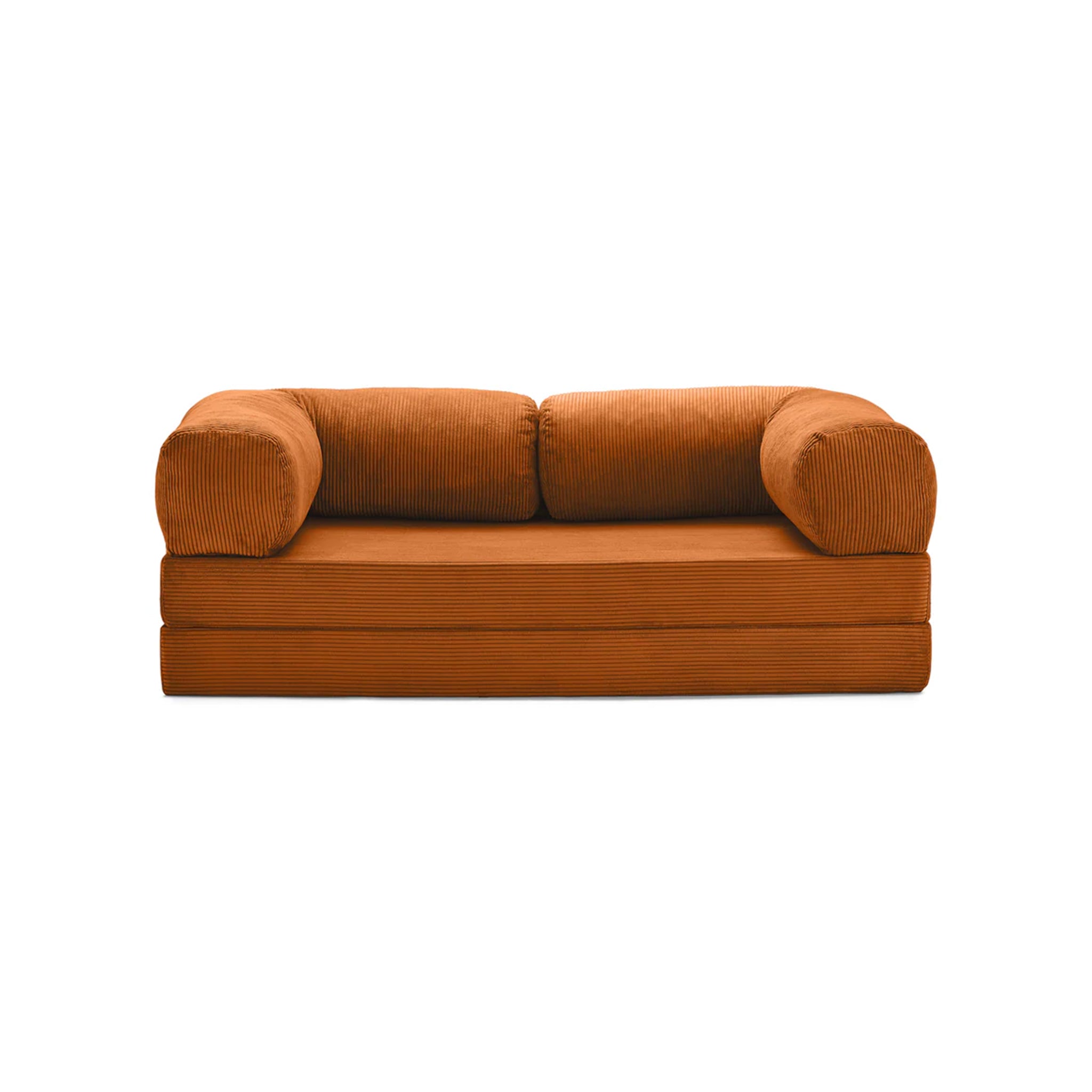 Revêtement en velours côtelé doux au toucher, rembourrage en mousse haute densité, coussins cylindriques inclus : chaque détail est pensé pour offrir un confort optimal et une esthétique contemporaine.