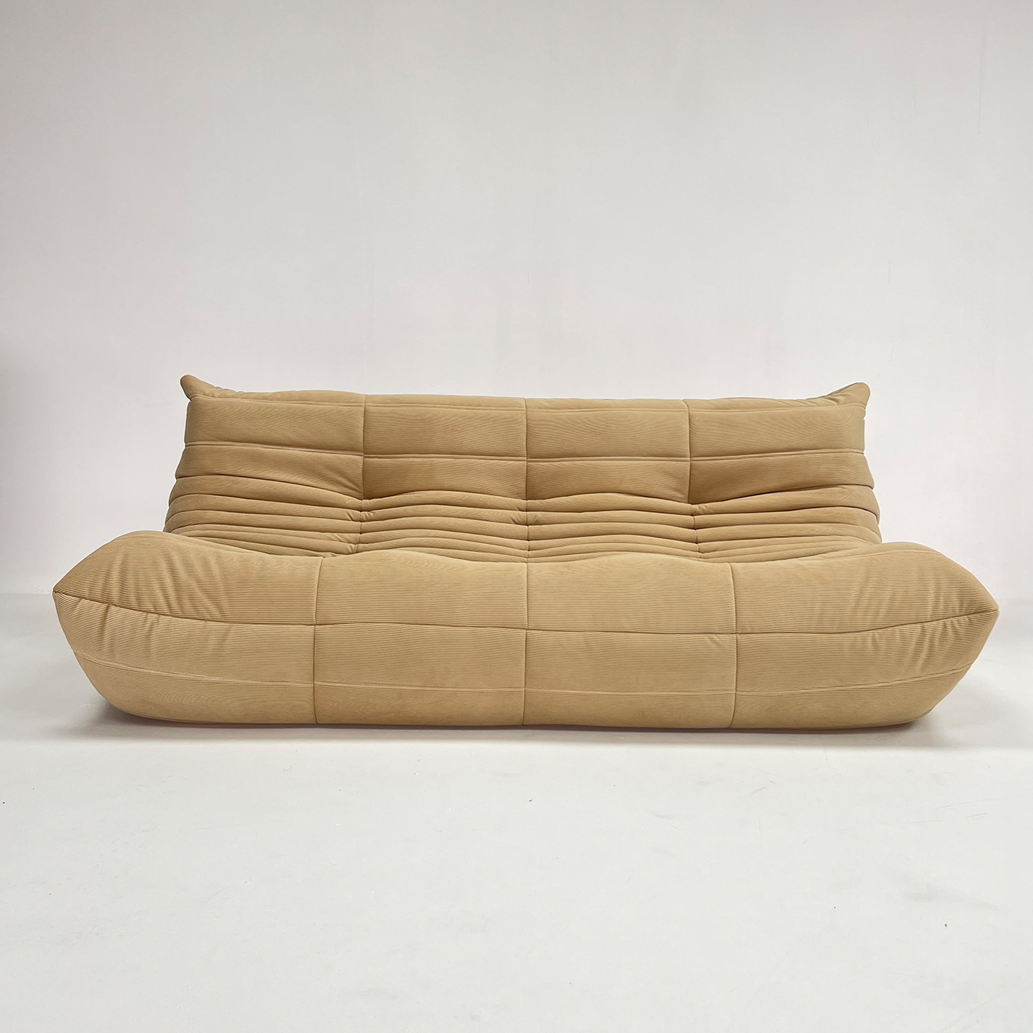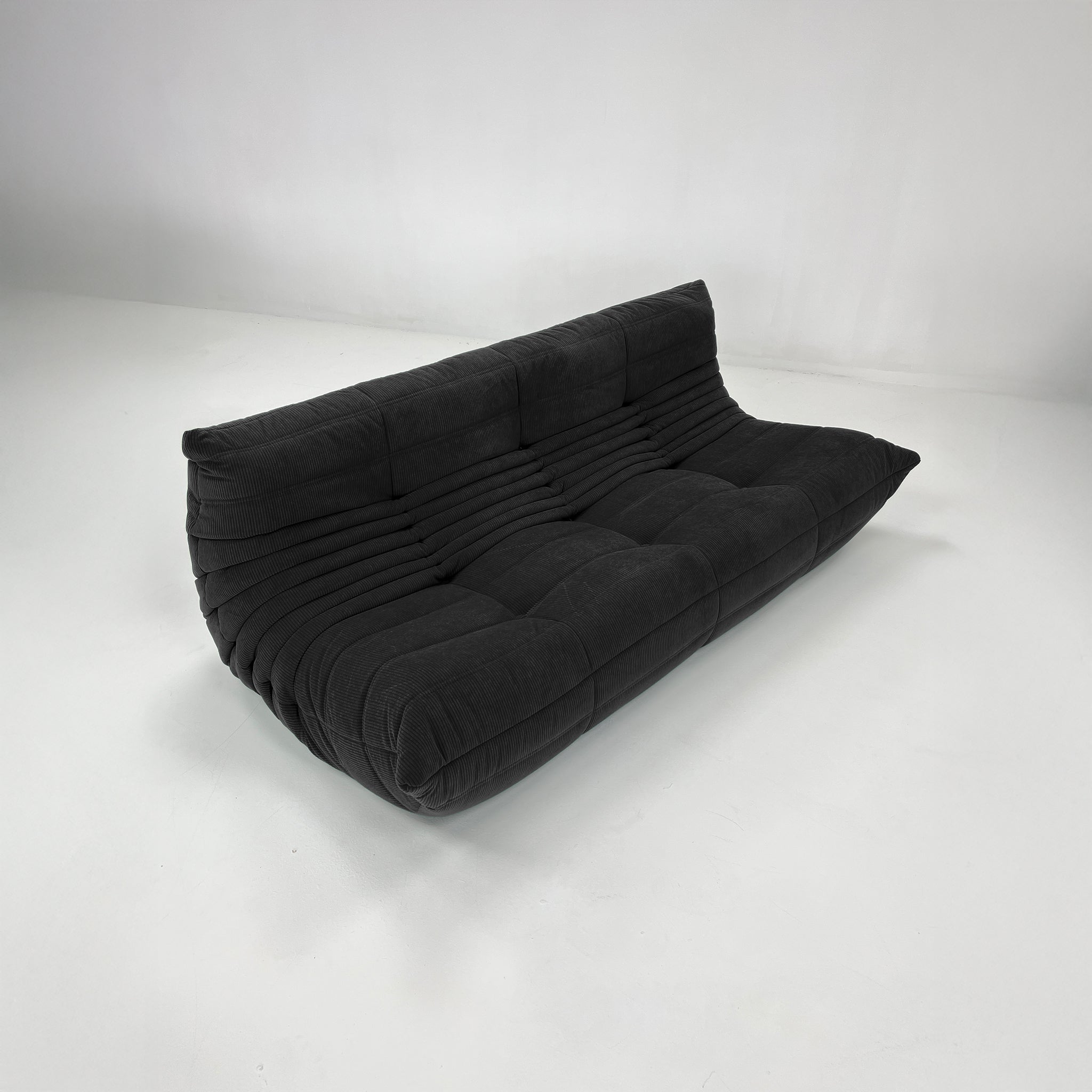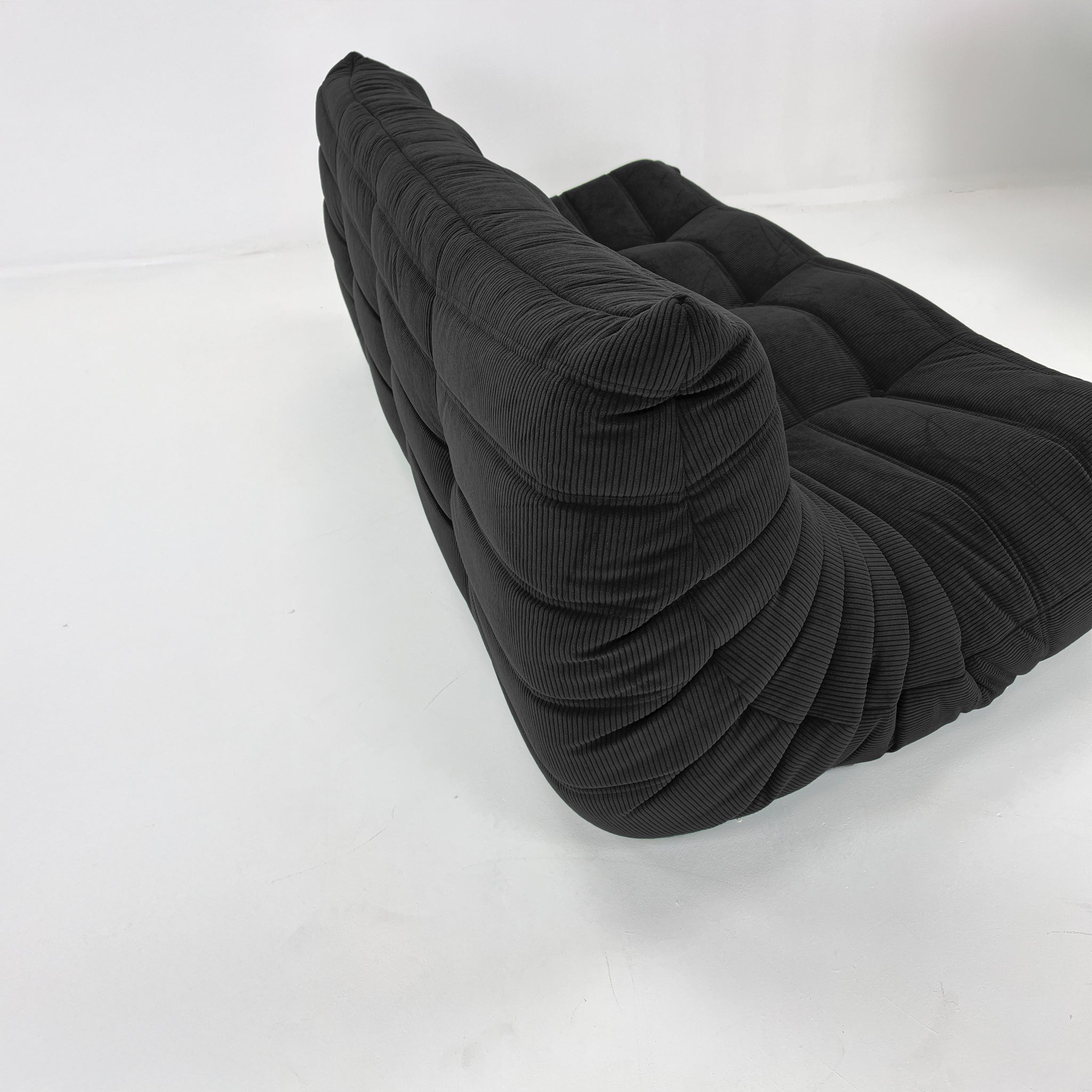 Fabriqué sans structure rigide visible, il repose entièrement sur une mousse haute densité multicouche, offrant une immersion totale et un soutien naturel. Le velours côtelé ajoute à la fois profondeur visuelle et chaleur tactile, créant un jeu de lumière subtil sur ses lignes généreuses.